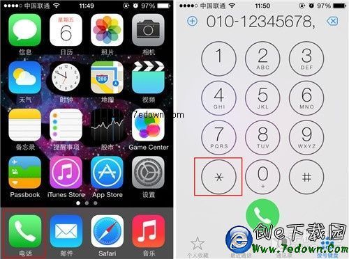 第一步:打開iPhone手機中的虛擬撥號鍵盤之後輸入要撥打的主機號碼,然後長按左下角的“*”號鍵,這時我們會發現在數字的後方會出現一個“,”號。
