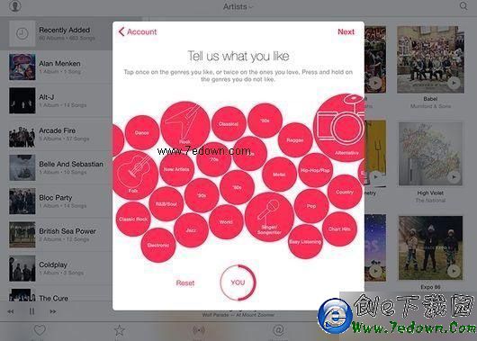 蘋果借鑒了Beats Music中一項非常受歡迎的功能,讓用戶可以告訴Apple Music自己喜愛的音樂風格以及歌手,該服務會據此決定出現在For You選項卡中的內容。當然,用戶可以隨時對此進行修改。