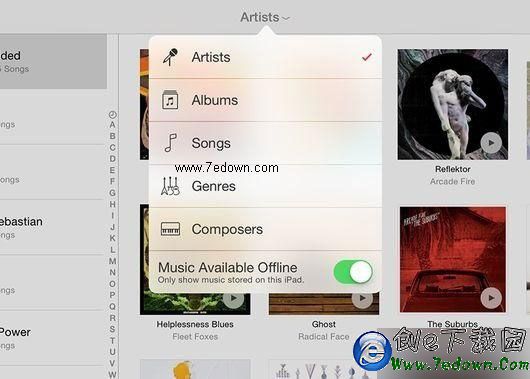 Apple Music將用戶存儲的本地iTunes曲目與公司數以百萬計的歌曲庫進行合並,此舉會對用戶造成一定程度的困擾。如果用戶只對那些存儲在本地設備上的曲目感興趣,可以在My Music選項卡頂端輕點Artists下拉菜單,然後打開“Music Available Offline”開關。