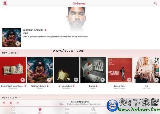 “For You”選項卡根據用戶的品味推薦全新曲目,而“New”選項卡則集中了用戶此前從未嘗試過的歌曲。通過位於屏幕頂端的“Genres”(流派)下拉菜單,用戶可以進一步收窄推薦曲目范圍。