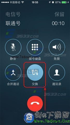 1)在通話中的界面,點擊【添加通話】按鈕,就可以再撥通另外一個聯系人號碼。如果你同時接通了兩通電話,可以點擊【交換】按鈕,實現切換通話。(如下圖)