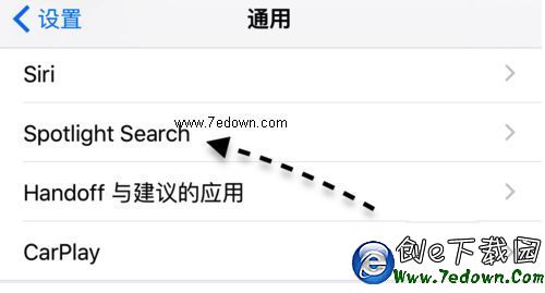 4、在通用列表裡,請點擊 Spotlight Search 一樣,如圖所示