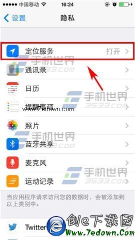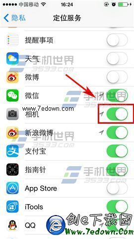 2)在隱私界面點擊【定位服務】,找到【相機】一欄,開啟右邊的按鈕即可。(如下圖)