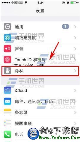 1)點擊【設置】,在設置界面找到並點擊【隱私】。(如下圖)