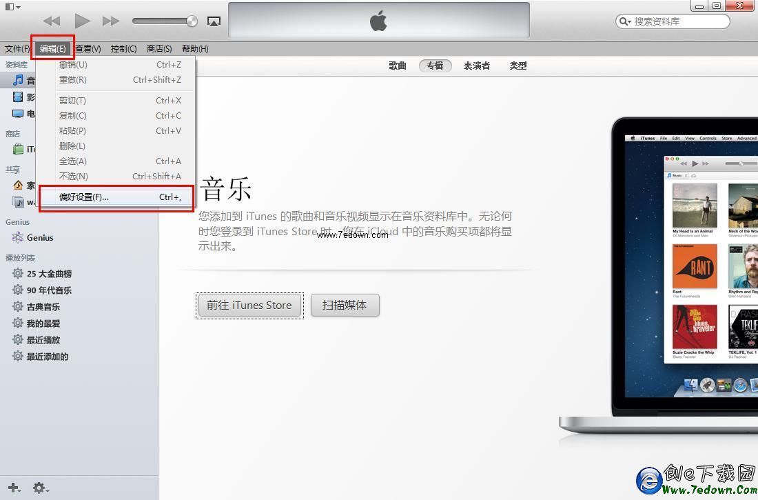 iTunes管理備份方法一、在電腦中打開iTunes工具,然後從菜單中選擇編輯->偏好設置,如下圖所示。