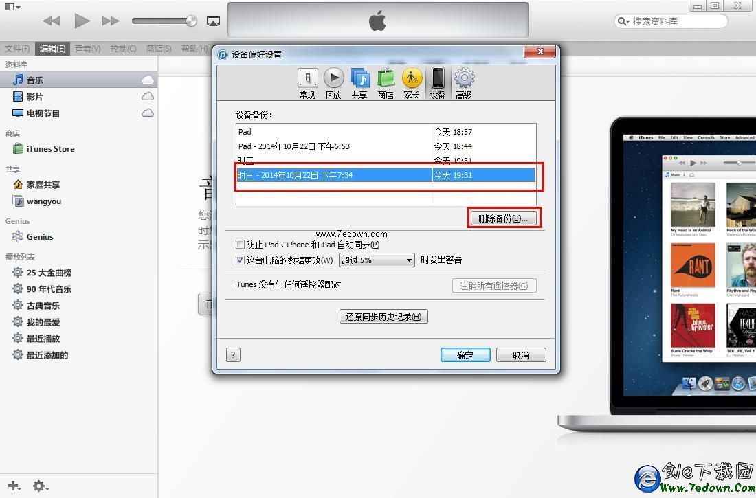 最後簡單介紹下如何管理iTunes備份,比如我們需要刪除此前的一些備份,該如何操作呢?