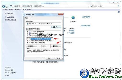 在彈出“屬性”窗口中,選擇“Internet協議版本4(TCP/IPv4)”,然後再點擊“屬性”,如下圖