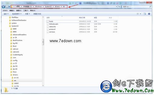 依次打開,系統盤的Windows\System32\drivers\etc目錄