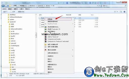 雙擊HOSTS文件,選擇用記事本打開,如下圖