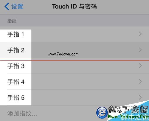 1、如下圖所示,當前我的 Touch ID 指紋中,已經添加了五個指紋數據欄,不能再添加更多的指紋了。