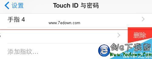 2、接下來我這裡先刪除一個指紋欄,然後用以添加新的指紋數據。若想要刪除一個指紋的話,在一欄向左滑動再點擊“刪除”按鈕即可。