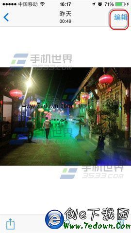 1)進入iPhone5s【相冊】找到要旋轉的照片,點擊【編輯】選擇【裁剪】。(如下圖)