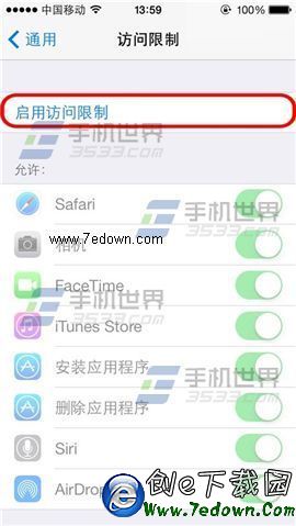 2)點擊【啟用訪問限制】,輸入訪問限制密碼後,選擇【通訊錄】。(如下圖)