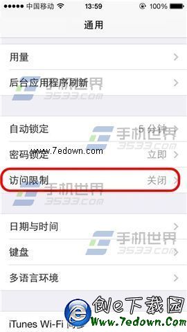1)打開iPhone6【設置】界面,點擊【通用】,選擇【訪問限制】。(如下圖)