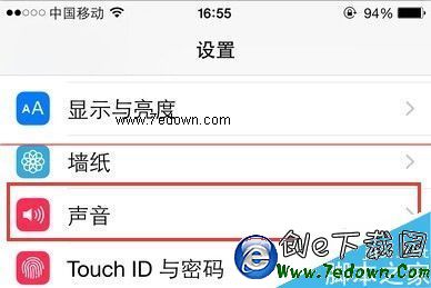 2、在打開的iPhone設置頁面中,往下翻頁,找到聲音欄目,進行打開