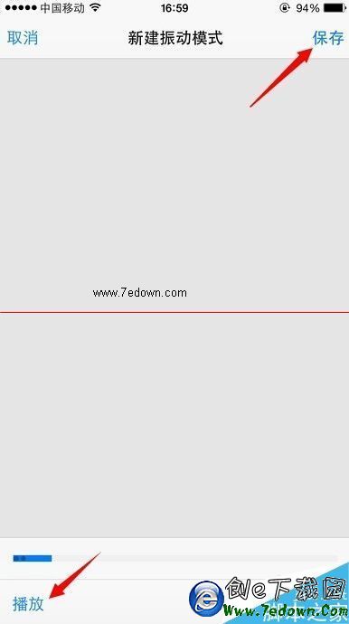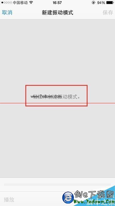 3、創建完成之後,我們可以點擊左下角的播放來感受所設置的振動模式是否滿意,不滿意可以取消重新創建,滿意的話直接點擊右上角的保存按鈕