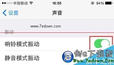 3、進入iPhone的聲音設置頁面,在振動欄目下,響鈴模式振動以及靜音模式振動兩個方式一般大家都知道會進行開啟,可是單單這裡進行設置還不夠,必須對每個專欄進行單獨的設置,比如短信