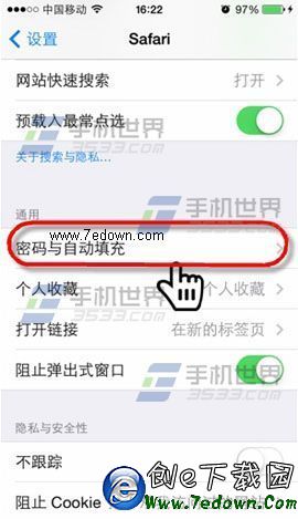 1)打開iPhone6【設置】點擊【Safari】,找到並點擊【密碼與自動填充】。(如下圖)