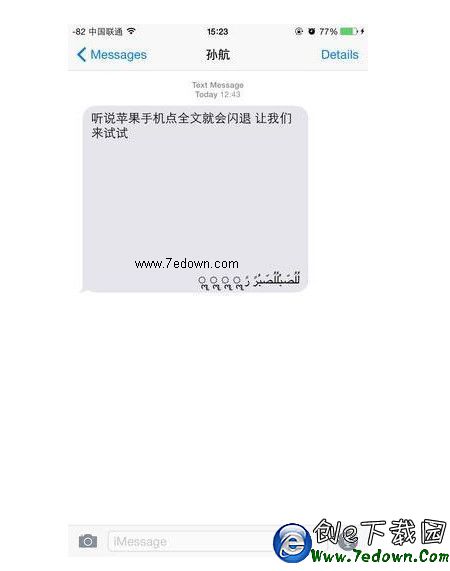 引起閃退的原因很簡單,只有因為一串亂碼而已。我們把這串代碼復制出來,分別以郵件和信息的形式發送給iPhone,發現並沒有出現閃退問題,說明這串亂碼並不會對iPhone造成任何影響。不過由於閃退的都是微信、QQ、微博,所以,應該是這些社交軟件對這串代碼“過敏”,導致該軟件直接閃退的。