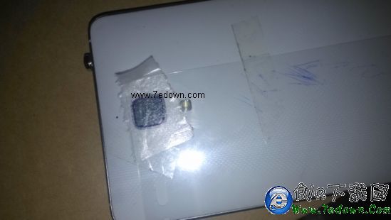 做好前期准備後,我們就可以著手操作了,首先拿出手機放好,然後把保護膜攝像頭開孔對准手機的攝像頭,用膠帶固定好,一定要分中,不然會嚴重影響拍照成像效果。