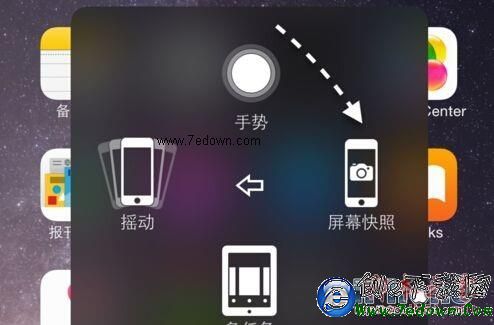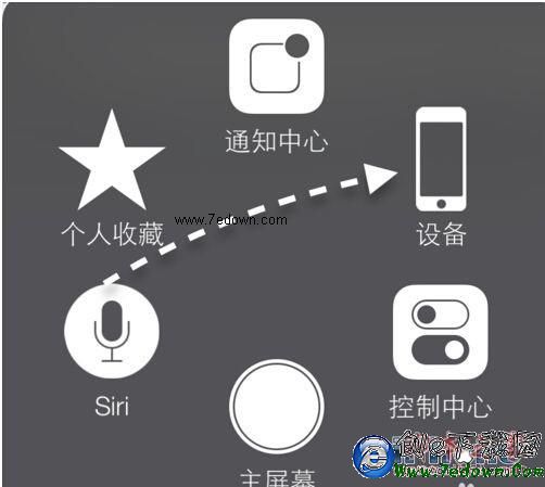 隨後我們會在屏幕上的看到一個小白點,點擊以後,會彈出功能菜單。此時請點擊“設備”圖標,如圖所示