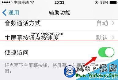 1、如下圖所示,當我們連續兩次觸碰HOME鍵,屏幕將會下拉一半,方便單手進行操作,如果我們不想要該功能,可以進行下面的操作來設置