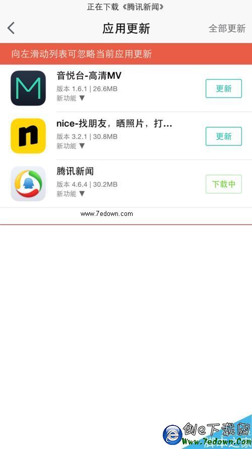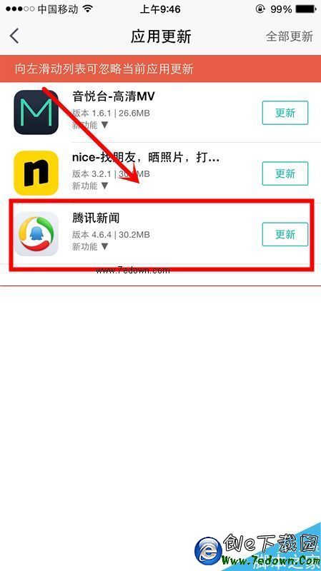 4、進入應用更新選項後,我們可以發現閃退的騰訊新聞選項。