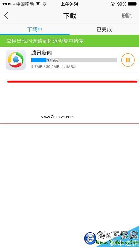 5、點擊更新,就會出現下載中,點擊下載中的任務,就會看到下載任務欄的應用。