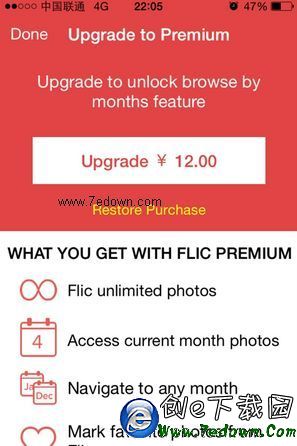 需要注意的是,這款APP暫時不支持刪除視頻;另外默認只支持刪除當月圖片,如果想刪除更多的圖片,需要交12元軟妹幣升級。