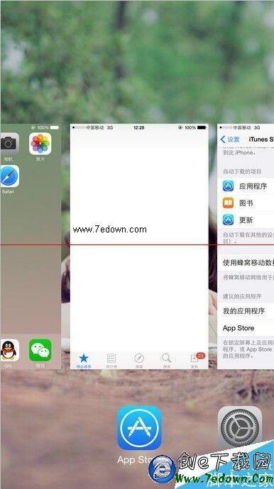 雙擊iPhone的HOME鍵,在運行後台中,將App Store向上滑動,退出程序,然後重新打開App Store,看一下問題是否還依然存在。