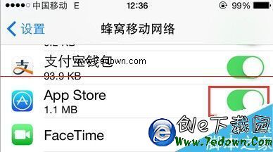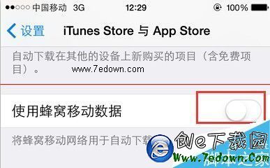 進入到iTunes Store與App Store頁面,查看一下使用蜂窩移動數據選項是否之前被關閉了,點擊打開右側的開關按鈕,然後重新打開一下App Store,看是否已經恢復正常