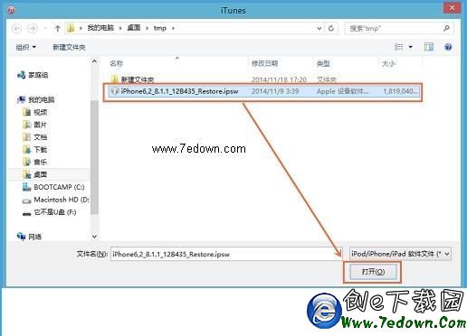 4.iTunes會彈出對話窗--請選擇已經下載好的固件--點擊更新--等待iTunes運行。