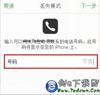 5、然後提示輸入用於與你聯系的備用電話號碼,這裡如果順手輸錯成丟的那個手機號可以取消“丟失模式”重新輸入;