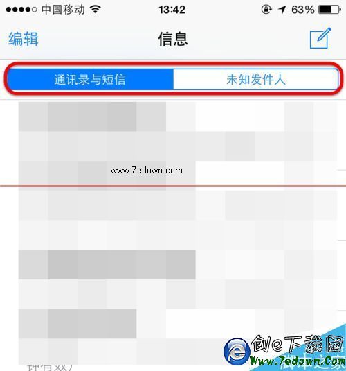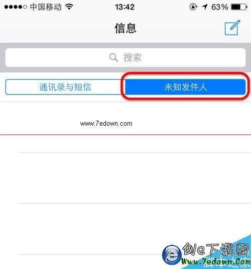 5、在打開【信息】,在搜索框下方可以看到【通訊錄與短信】和【未知發件人】兩個標簽了