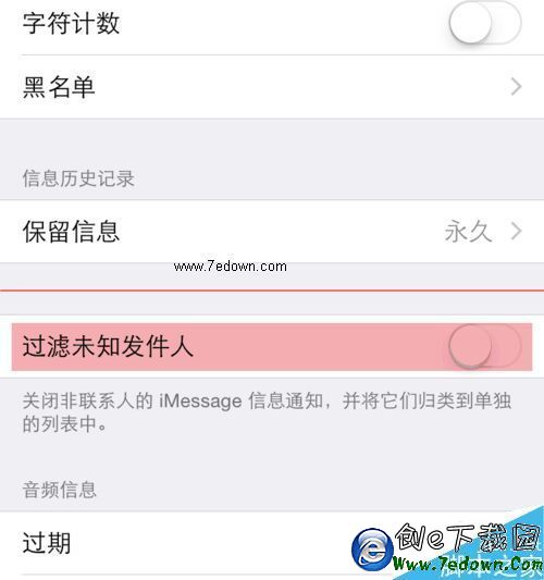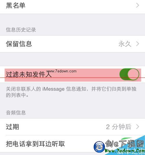 4、將【過濾未知發件人】後面的開關打開