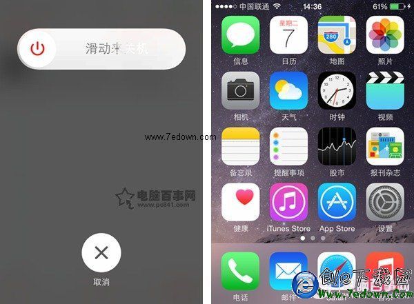 第二步:松開電源鍵,不要滑動關鍵。之後按住Home鍵幾秒鐘,iPhone會直接退回到桌面,Home鍵也就調整完畢了。