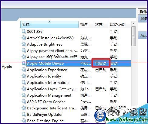 4、確認【apple mobile device】是啟動的狀態