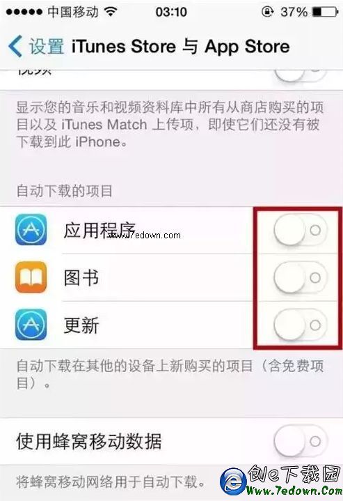 如果你的iPhone在使用時出現卡頓,那可能是因為它正在後台嘗試應用升級,而這完全可以通過手動的方式執行。想要更改自動升級應用的設置,你需要進入【設置】-【iTunes Store和App Store】自動下載的項目,然後全部關閉。