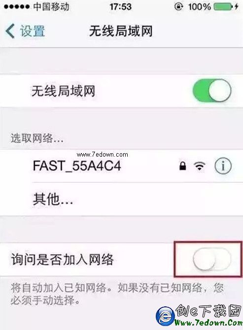 你的iPhone會經常詢問你是否要加入附近的Wi-Fi網絡嗎?如果是,你或許應該關掉這個功能。因為當你的iPhone在進行任何自動操作時,比如搜索附近Wi-Fi或升級應用,都會降低運行速度。想要關閉該功能,你需要進入【設置】-【無線局域網】-【詢問是否加入網絡】,然後將其關閉。