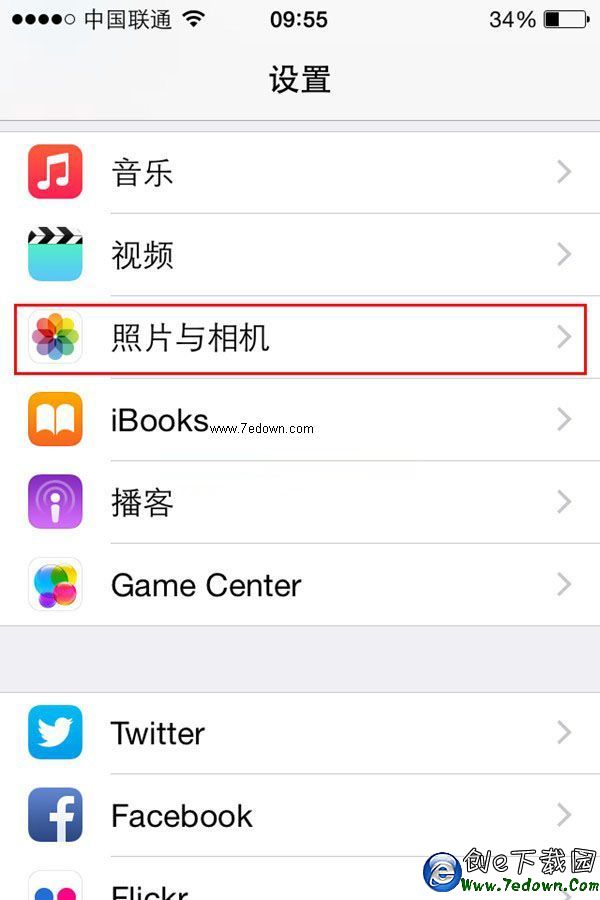 二、進入iPhone6【設置】,找到【照片與相機】設置,如下圖所示。
