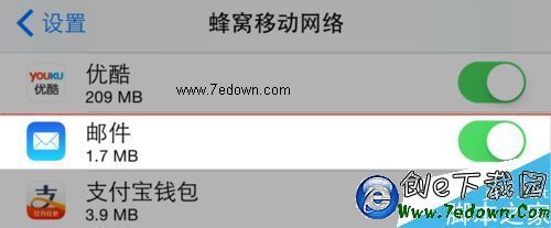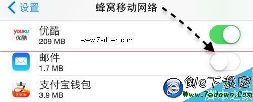 5、如果我們不想讓郵件使用移動網絡流量的話,只需要關閉它即可。