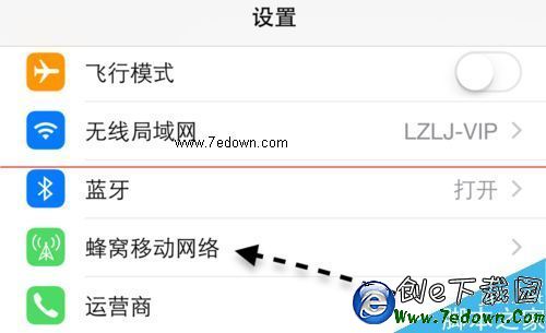 3、在設置列表裡,請點擊打開“蜂窩移動網絡”一欄,如圖所示