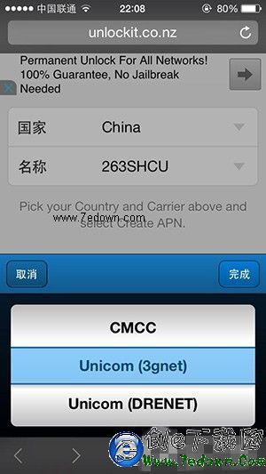 如果你是中國移動用戶你可以選擇CMCC接入點。如果你是中國聯通的用戶可以選擇Unicom接入點。然後選擇完成。
