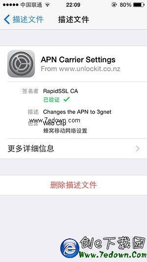 4:選擇接入點後點擊創建APN。iPhone將創建一個描述文件。