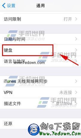 1)打開iphone6plus手機【設置】點擊【通用】,選擇【鍵盤】。(如下圖)