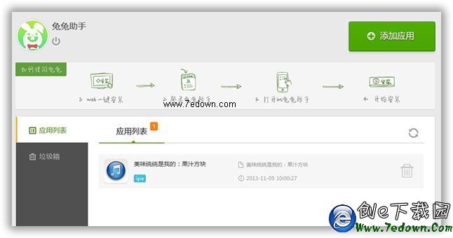 Step 3:使用step 1中同一賬號在PC頁面登陸,而後會進入應用傳輸列表頁,此時網頁上的ipa文件就會自動無線傳輸到你的移動設備,並且在設備上自動開始安裝應用。