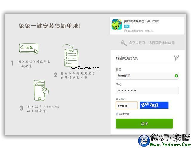 Step 2:在威鋒網、兔兔助手官網等網頁上找到”兔兔一鍵安裝“按鈕並點擊,而後會跳轉到一個登陸頁面;