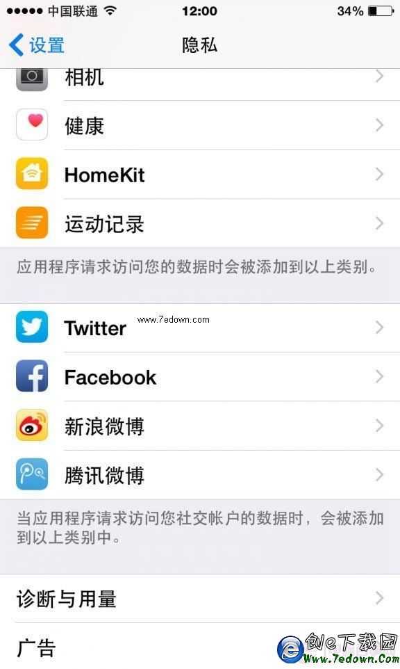 到“設置”、“隱私”中關閉位置定位服務,或者保留那些必須要定位的應用,將其它沒用的都關掉。另外,在“定位服務”中的“系統服務”中,也有許多自帶的系統功能可以取消定位功能,比如基於位置的iAd廣告、基於位置的提醒和診斷與用量等。