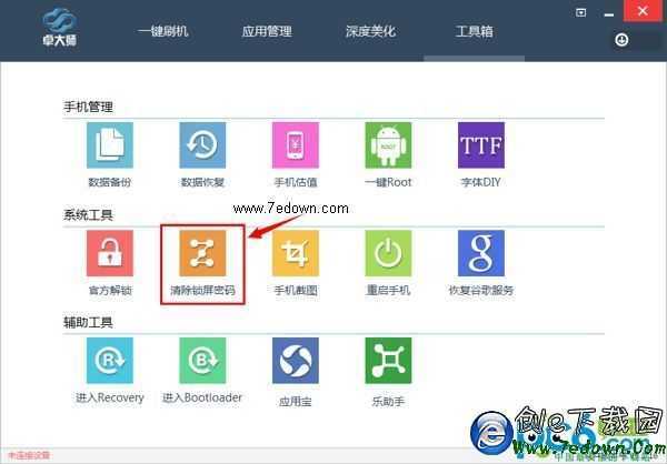 在工具箱頁面選擇“清楚鎖屏密碼”即可