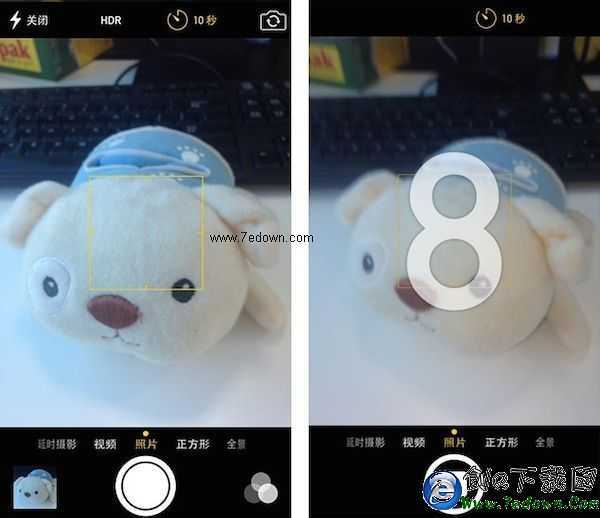 iOS8的相機提供了定時拍照的功能,可以選擇3秒或10秒定時。在頂部選擇定時時間後,再按下拍照鍵就會開始倒計時,倒計時結束後自動拍照。